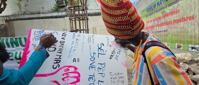 Port-au-Prince, le Samedi 16 Octobre 2021 Nous, ICKL, KJM, MPP, MPNKP, PAPDA,… Lire la suite »Déclaration finale du Forum sur l’Agro écologie et la souveraineté alimentaire
